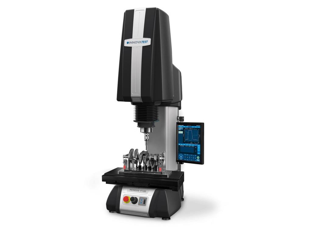 Der NEMESIS 9000RS besitzt einen sehr steifen linear absenkenden Prüfkopf mit Kraftmesszelle. Dies kann in zwei unterschiedlichen Methodiken erfolgen: Nach dem Start detektiert der Prüfkopf selbständig das Prüfstück. Optional kann der Anwender den Prüfkopf manuell absenken Dies kann mit manueller Höchstgeschwindigkeit oder im Kriechgang erfolgen.