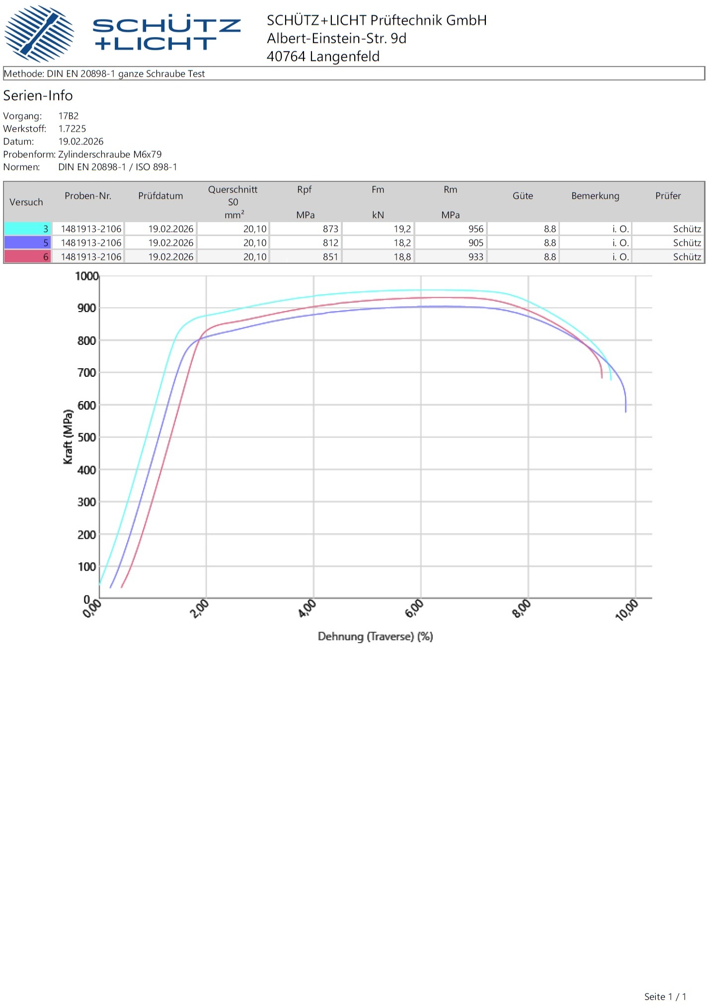 - Prüfparameter gemäß ISO 898-1 hinterlegen
